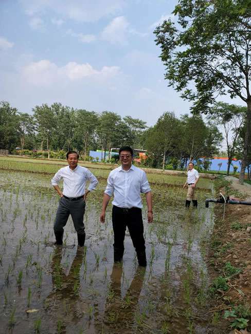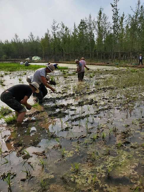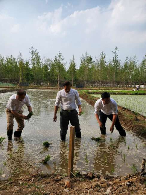 日前,贵阳鞠豪教育内容创作有限公司董事长梁雨、总裁谢俊率集团高级管理人员来到位于北京西四环外的锦绣大地生态园,在景色迷人的玉泉山山下,同志们挽起裤脚跃进田里,生态园农业技术员一边弓腰示范,一边讲解道“插秧是个技术活,将秧苗窝在虎口处,既要轻又要稳,用巧劲儿将秧苗抛在泥里,不能抛得太深,又要确保植保灌溉时,秧苗不漂浮在水面上。”
